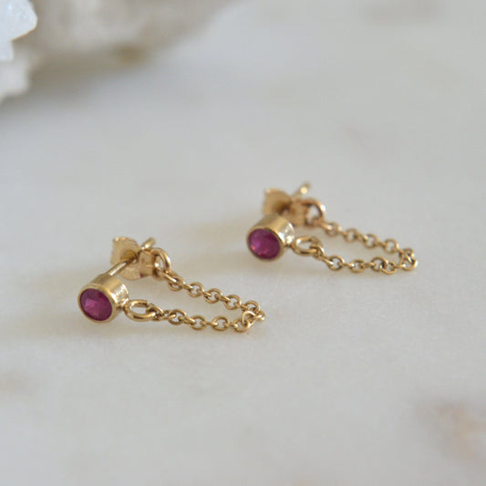 14k Ruby Chain Earrings