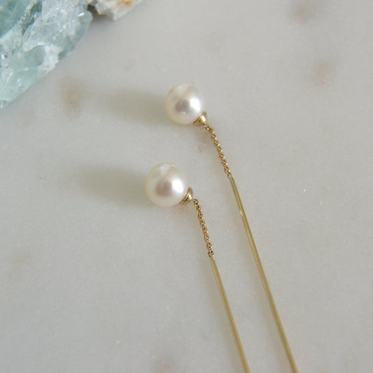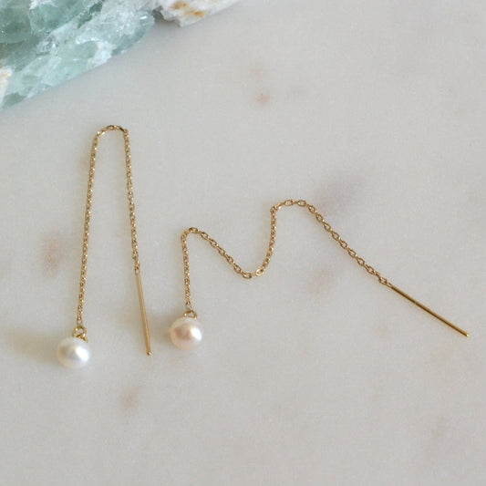 • 14k pearl chain threader earrings