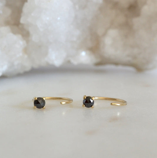 14k Black Diamond Huggies