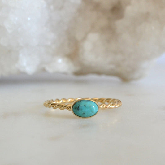 14k Oval Turquoise Rope Ring