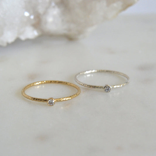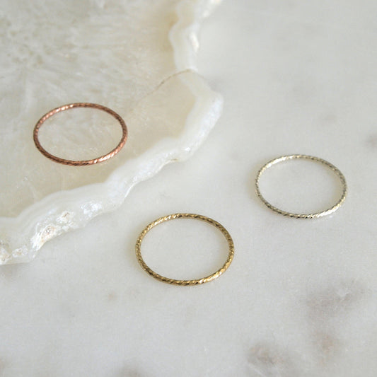 As a company with a completely unique aesthetic, we thoughtfully design our dainty sterling silver rings to be as versatile as possible. From the negative space in the Open Circle and Half Moon rings to the subtle details of the Sparkling Stacking and Textured Band rings, our styles are diverse and distinct. We encourage you to mix and match band styles, wear multiple types of gemstones on the same hand, and stack as many bands as you wish on the same finger. Make every hand gesture a sparkling delight, and let your eclectic personality shine when you choose handcrafted jewelry from Fondeur.